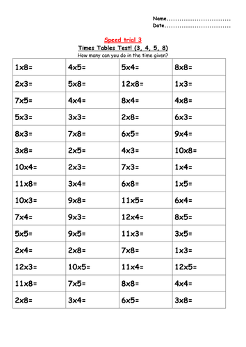 Times Tables Speed Tests Worksheets Teaching Resources Tpt