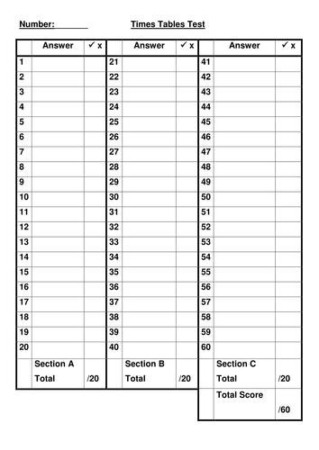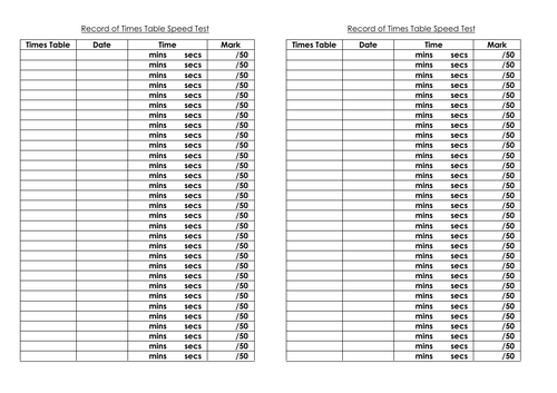 Times Table Tests Recording Sheets For Speed Tests Results Teaching Resources